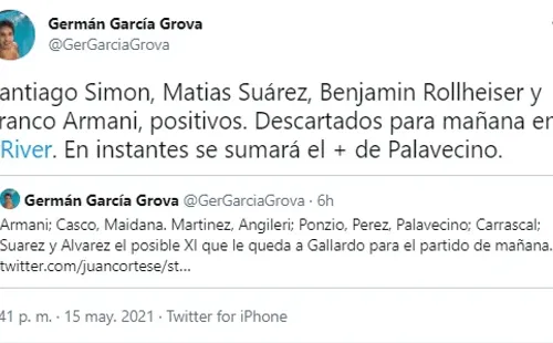 Es que un importante grupo de futbolistas dio positivo esta mañana tras los primeros testeos. Entre ellos, varios de los que iban a ser titulares en La Bombonera. Estos son: Lux, Bologna, Petroli, Paulo Díaz, Rojas, Castro Ponce, De la Cruz, Zuculini, Borré y Girotti.