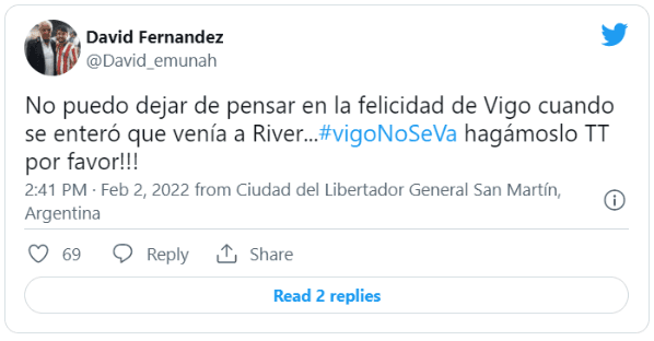 Pasaron algunas horas de que se confirmó la salida del ex-Colón y #VigoNoSeVa se hizo tendencia en Twitter. Para la gran mayoría de los simpatizantes, el defensor merece más chances en el club. Para Gallardo no.