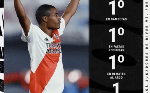 Posicionado por la izquierda, Nicolás De La Cruz fue socio constante de Milton Casco y Matías Suárez en cada avance de River. Presionó alto en el primer gol y remató de manera espectacular para el 2 a 0, aunque su aporte no se limitó a su gran influencia en aquellos tantos. Repasamos sus principales estadísticas.