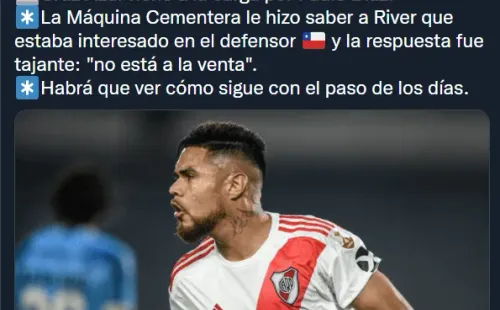 Uno de ellos es el del Cruz Azul de México. Según informó el periodista César Luis Merlo, “La Máquina Cementera le hizo saber a River que estaba interesado en el defensor chileno“, pero casi automáticamente desde el Millonario les dieron una sequísima respuesta. “No está a la venta“, manifestaron en Núñez, por lo que parece que el internacional chileno seguirá en River por un tiempo más.