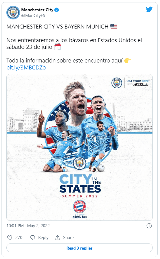 En las últimas horas del lunes, la cuenta oficial del City confirmó que el 23 de julio jugaráante el Bayern Múnich. El encuentro tendrá lugar enLambeau Field de Wisconsin(estadio de fútbol americano) y, teniendo en cuenta los plazos de pretemporada, podría darse el debut del argentino.
