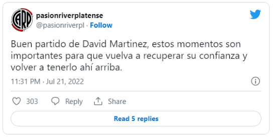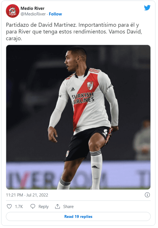 Se trata de Héctor David Martínez, quien venía siendo muy cuestionado y ayer regresó para jugar un gran encuentro. El defensor fue importante tanto en la recuperación como en la salida y es una gran noticia para Marcelo Gallardo, teniendo en cuenta que la zaga venía siendo uno de los puntos más flojos.