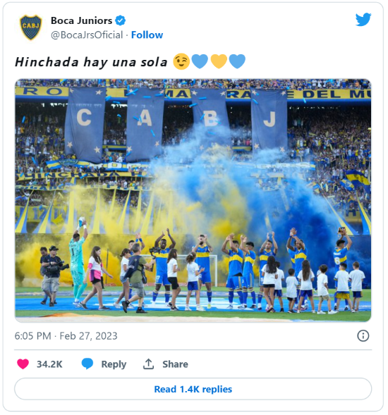“Hinchada hay una sola”, escribió el Xeneize justo cuando la FIFA entregaba el premio de mejor afición. Este mensaje fue muy celebrado por el pueblo azul y oro, pero no gustó ni un poco del otro lado de la vereda. Por eso, desde River dejaron una respuesta.