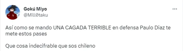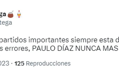 Justamente, el chileno fue tendencia en las redes sociales, a pesar de haber puesto un gran pase para Enzo Díaz en la jugada que desató el penal convertido por Lucas Beltrán, ya que los hinchas no terminan de convencerse con su nivel, debido a que en algunas salidas desde abajo regaló la pelota.