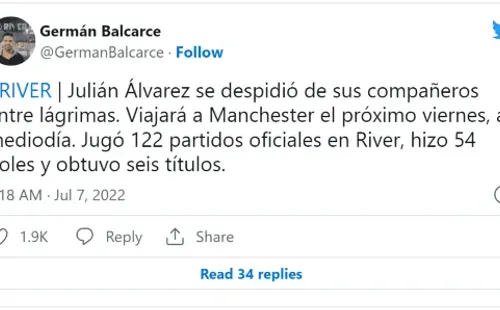 Según informó Germán Balcarce, el delantero le dijo adiós a cada uno de sus colegas con lágrimas en los ojos. Más allá de que no se dio de la forma ideal, su reacción tiene sentido teniendo en cuenta que se termina una etapa de muchos años en el conjunto de Núñez.