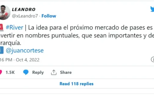 Según informó Juan Cortese en TyC Sports, “la idea para el próximo mercado de pases es invertir en nombres puntuales, que sean importantes y de jerarquía”. De esta manera, será difícil ver tantas incorporaciones como en el arranque de este año, pero buscarán que haya nombres para darle un salto de calidad al plantel.