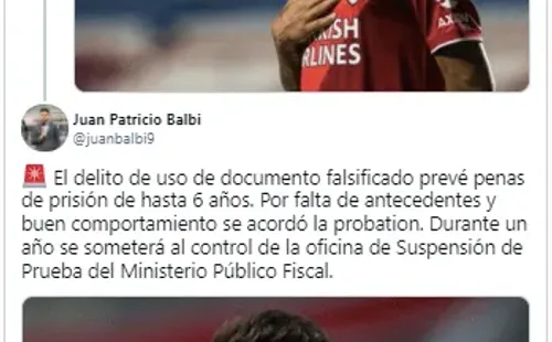 El futbolista fue procesado sin prisión preventiva, pero cabe destacar que el delito de uso falsificado de un documento podía otorgarle una pena de prisión de hasta 6 años. El periodista Juan Balbi informó que el mediocampistase someterá al control de la oficina de Suspensión de Prueba del Ministerio Público Fiscal durante un año.