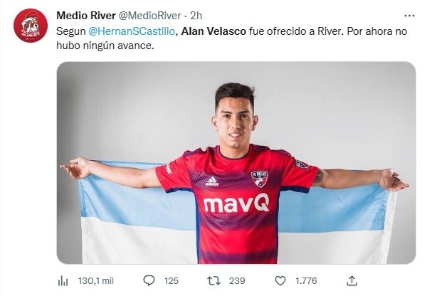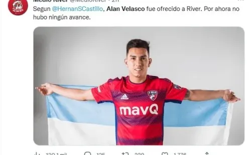Según detalló el periodista Hernán Castillo, a las oficinas de Núñez llegó el nombre de Alan Velasco y la Secretaría Técnica lo está estudiando. El actual atacante del FC Dallas fue la compra más cara de la historia de su club, luego de cerrar con Independiente por una cifra mucho más baja que los 20 millones que indicaban su cláusula de rescisión, y podría llegar a River en caso de que haya un pulgar arriba. Sin embargo, todavía no hay avances en esta operación.