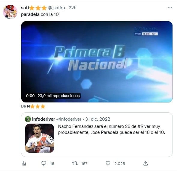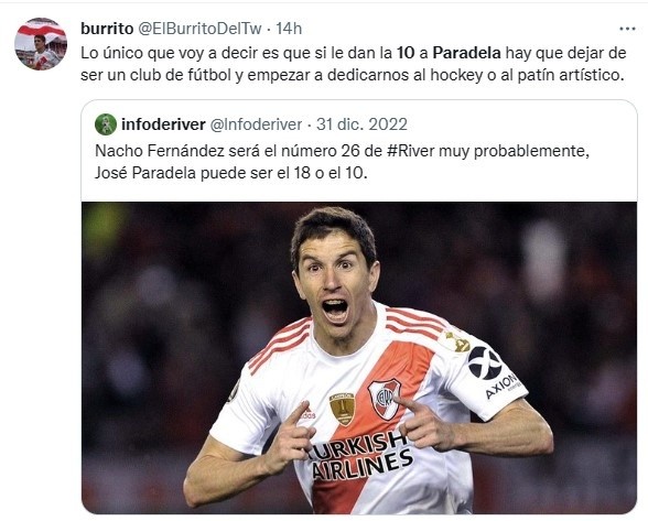 La reacción en Twitter ante la chance de que Paradela use la “10” de River