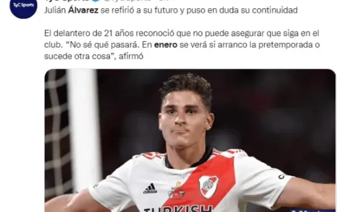El nivel que mostró el delantero de Calchín durante el último semestre, incluyendo su participación activa en la Selección Argentina, despertó el inminente interés de los clubes más grandes de Europa, caso Juventus, Milan, Barcelona, Real Madrid, entre otros más. Desde Núñez fijaron como uno de los objetivos principales poder renovar el contrato de Álvarez más allá de Qatar 2022, elevando la cláusula de rescisión y el salario del jugador. Sin embargo, las negociaciones aún siguen sin llegar a buen puerto y el próximo año será una incógnita para el atacante.