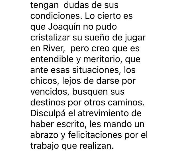 Luego de muchas dudas sembradas en las redes sociales sobre el futuro del jugador, su papá, Germán Panichelli publicó un comunicado explicando la razón de la salida de su hijo, en el que comentó que su hijo “estaba ilusionado con jugar en River, pero el club no le pudo garantizar que iba a formar parte del plantel profesional”.