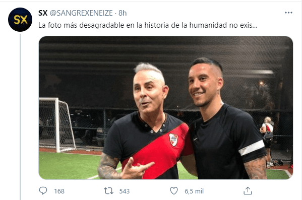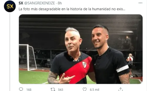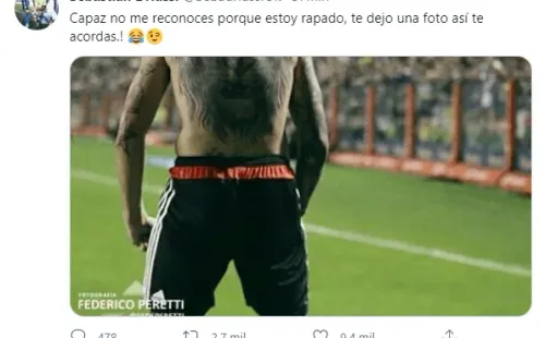“¡Capaz no me reconoces porque estoy rapado, te dejo una foto así te acordás!”, le contestó el delantero ex River junto a la foto de una celebración suya en un Superclásico contra Boca en la Bombonera.