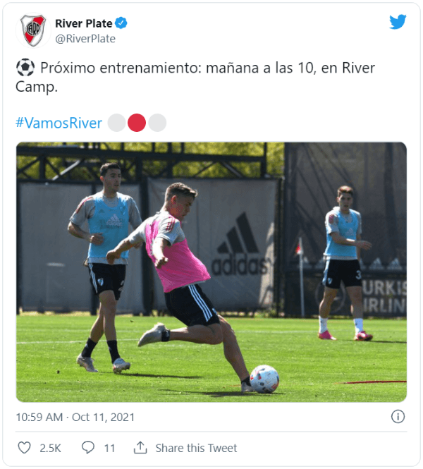 En primer lugar volverán los que están afectados a sus selecciones: Julián Álvarez, Franco Armani, Nicolás De La Cruz y Robert Rojas. Además, David Martínez ya se pondría a disposición tras su última lesión muscular y Enzo Pérez recibiría el alta tras su fisura en el choque ante Boca.
