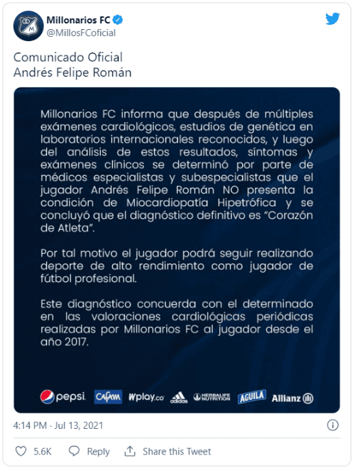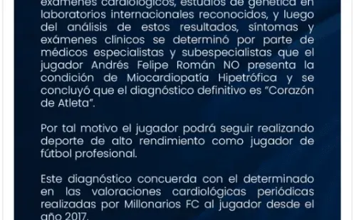 Al futbolista de Millonarios le habían detectado un problema cardíaco y se decía que hasta podía complicarse su futuro en el deporte profesional. Tras varios meses de inactividad y muchos análisis, la medicina le dio la derecha al marcador de punta para seguir jugando.