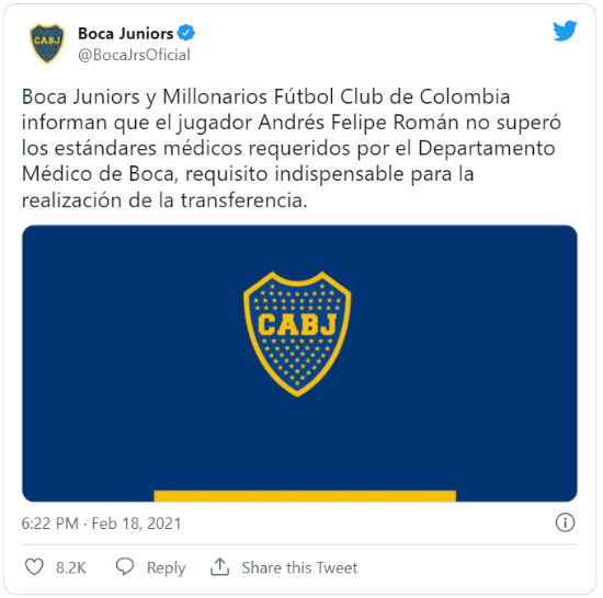 El lateral derecho colombiano que aparece en la órbita del Millo es el mismo que Boca estuvo cerca de contratar en febrero de 2021. Aquella vez, el pase estaba prácticamente cerrado y un resultado de la revisión médica terminó frustrando la transferencia.
