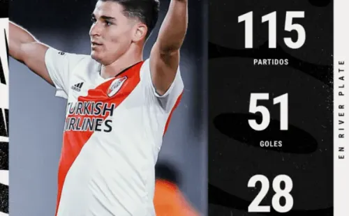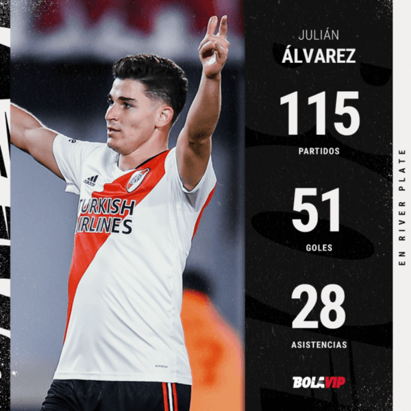 River Plate barrió 8a 1a Alianza Lima por la última fecha de la Copa Libertadores. ¿Los autores de los goles en el local? Santiago Simón, Elias Gómez y Julián Álvarez, quién convirtió nada menos que ¡6 goles! para alcanzar la cifra total de 51en el club.