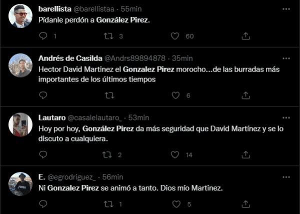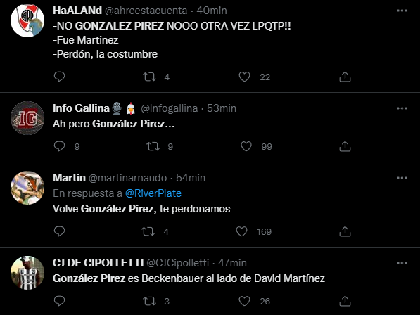 Tanto fue así, que los fanáticos millonarios hicieron tendencia en Twitter a Leandro González Pirez, el central suplente de La Banda y que en varios partidos fue cuestionado por sus malos partidos jugados en su vuelta a River proveniente del Inter Miami de la MLS.