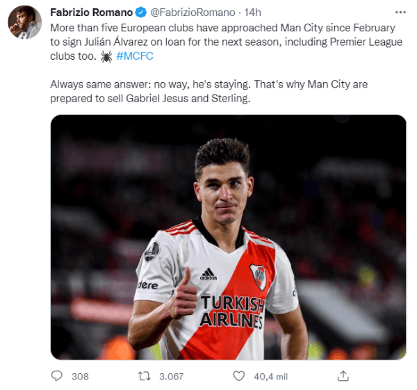 Lejos de intentar buscarle la salida, el Manchester City habría tomado una decisión con respecto al plantel profesional que beneficia al actual jugador de River. Según informó Fabrizio Romano, los Ciudadanos rechazaron hasta cinco ofertas de cesión por Julián Álvarez y el jugador se quedará para ser dirigido por Guardiola.