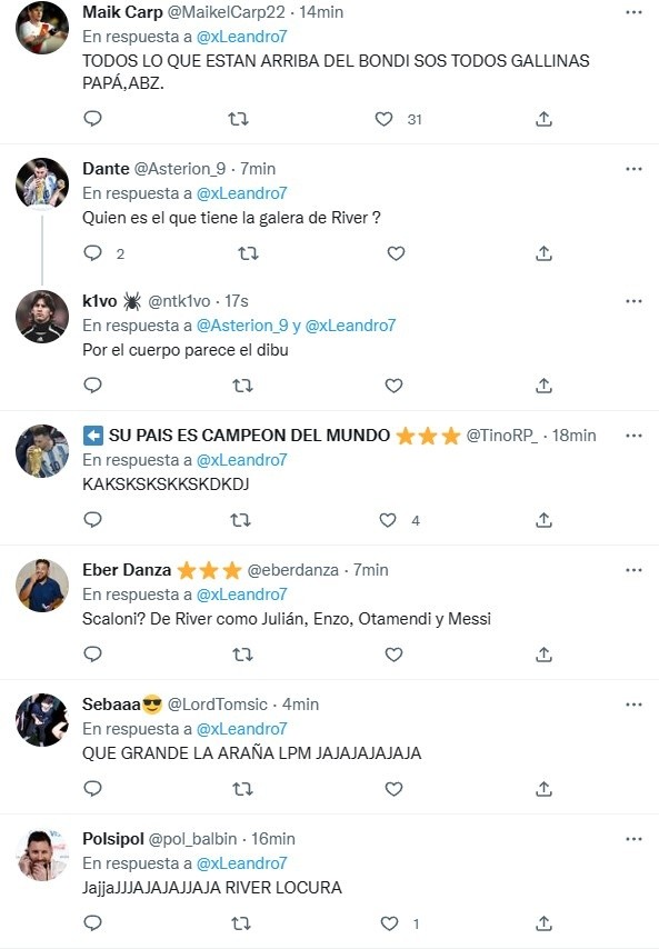 Tanto el Araña como Enzo Fernández y Exequiel Palacios también fueron vistos con indumentaria y objetos de River, tanto en los festejos en Qatar como en el recibimiento en Buenos Aires. En esta oportunidad, Julián le entregó a los hinchas del Millo una linda imagen del entrenador campeón del mundo con los colores de La Banda.