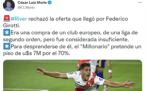 Por ese motivo, según reveló el periodistaCésar Luis Merlo, el conjunto de Núñez rechazó una oferta que llegó desde Europa, de un club de “segundo orden”, la cual se consideró insuficiente. Lo que desean para comenzar a negociar es al menos 7 millones de euros por el 70% del goleador.