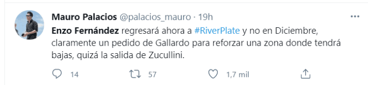 De esa manera, en el mediocampo habría un refuerzo muy importante para lo que se viene en el torneo local, la Copa Argentina y sobre todo la Copa Libertadores, sabiendo ya que los octavos de final comenzarán en el Monumental y terminarán en la cancha de Argentinos Juniors, rival que en la última ocasión que se enfrentó a los de Núñez salió victorioso.