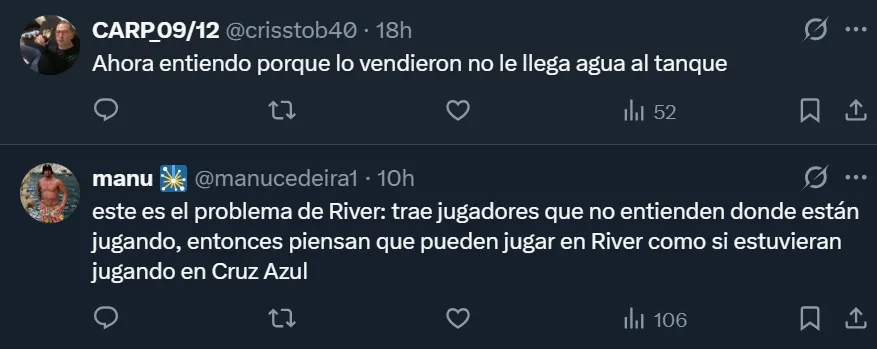 Las críticas de los hinchas de River