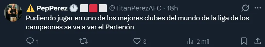 Panathinaikos utilizó sus redes sociales para presentar a Santino Andino como nuevo refuerzo. Tanto en Instagram, como en X y Facebook hubo comentarios de hinchas de River. En líneas generales, los hinchas del Millonario expresaron que no podían comprender cómo eligió ese equipo de una liga menor teniendo la oportunidad de llegar a uno de los clubes más importantes de Sudamérica.