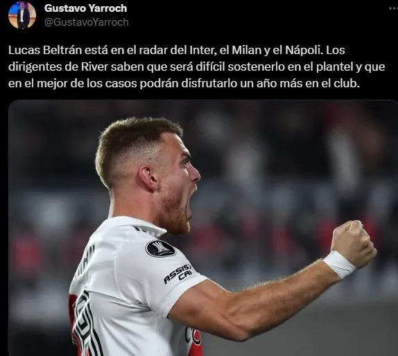 Si bien cada uno de estos tiene grandes delanteros en su plantel, pensando en el futuro del jugador de River tanto Inter como Milan y Napoli estarían analizando pagar los 25 millones de euros que Beltrán tiene como cláusula para asegurarselo de cara al futuro.