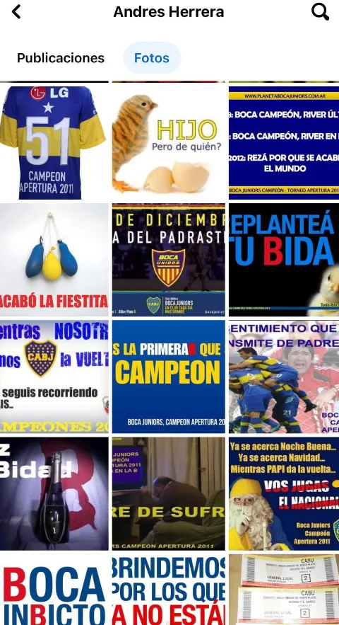 Las publicaciones en la cuenta de Facebook de Andrés Herrera datan de principios de década pasada, entre 2010 y 2014, incluyendo la época en la que River transitaba el peor momento de su historia tras el descenso en la promoción del 2011.