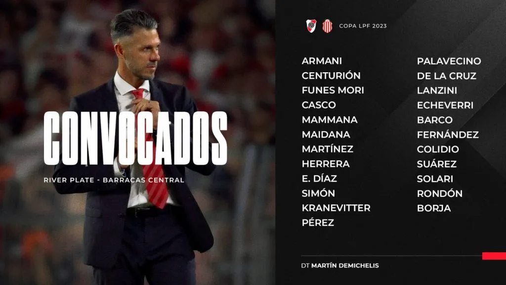 Es por eso, que tras el entrenamiento de esta tarde, el entrenador del Millonario, Martín Demichelis, dio la lista con los 23 jugadores que quedaron concentrados post entrenamiento, en la que resalta la vuelta de Nicolás De La Cruz, recuperado de su estado gripal.