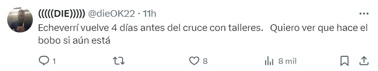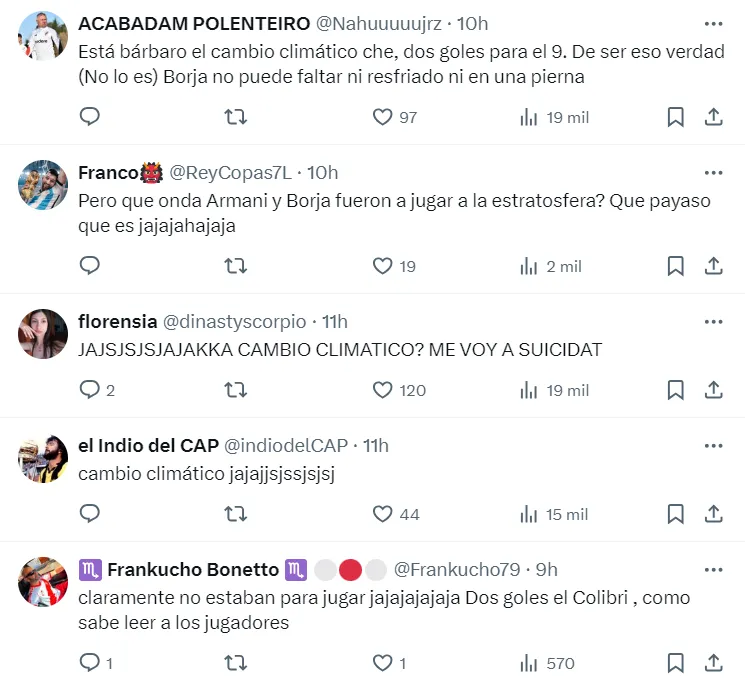 La cuenta de Twitter @CarpetaMillo_ compartió ese tramo de la conferencia de prensa en dicha red social y los hinchas llenaron los comentarios con críticas hacia el DT. Algunos le echaron en cara que justamente fue Borja el autor de los dos goles y que no influyó en absoluto nada de lo que él dijo en su respuesta. Otros fueron más duros y lo tildaron de payaso y que debe irse. La realidad es que Demichelis con ese tipo de respuestas -no es la primera que tiene de ese estilo- irrita a los hinchas que solamente quieren ver jugar bien al equipo.