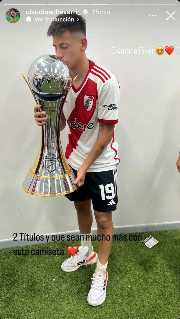 Claudio Echeverri apenas tiene 17 años y está dando sus primeros pasos en Primera. Es importante entender que a esa edad se pueden cometer algunos errores y que no hay malicia alguna. Sin ir más lejos, minutos después de sus polémicas declaraciones, el Diablito compartió una foto en Instagram con el Trofeo de Campeones y escribió: “Siempre River. Dos títulos y que sean muchos más con esta camiseta”.