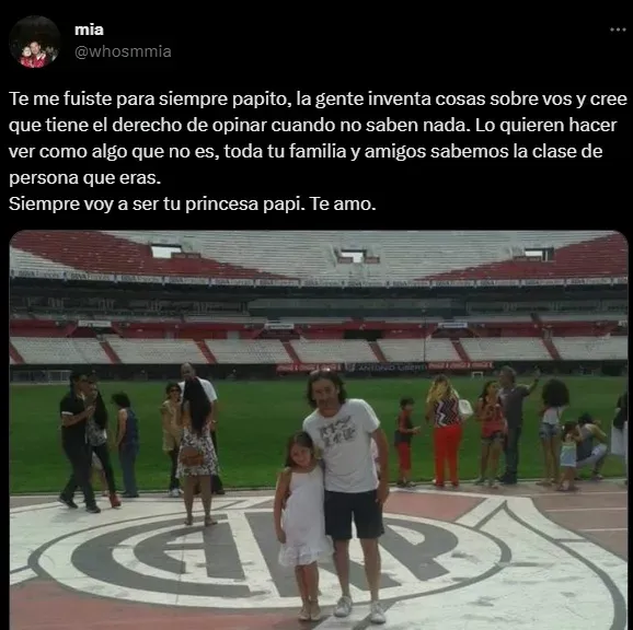 Finalmente, para cerrar el adiós simbólico hacia su padre en las redes sociales, Mía colocó una frase que golpeó a todos y que ya llevó al tuit a tener más de 13 mil likes: “Siempre voy a ser tu princesa papi. Te amo“.