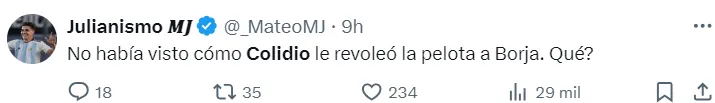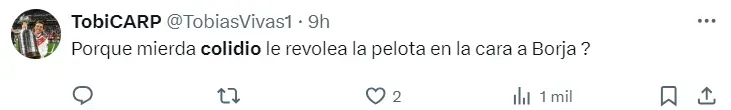 En un video de TyC Sports, se conoció un detalle más de toda esa secuencia. Cuando Esequiel Barco vio que Borja iba a buscar otra pelota, le pidió a la distancia a Colidio que no se la diera. Es por eso que el atacante con pasado en Inter de Milán tomó la decisión de arrojarla lejos.