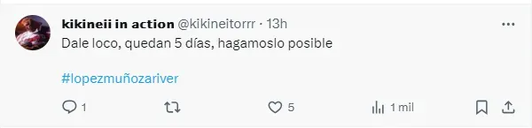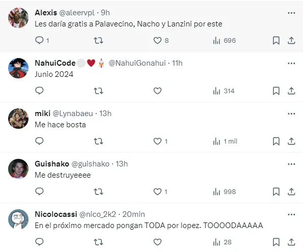 “Dale loco, quedan 5 días, hagámoslo posible”, “Recemos para que no se vaya a Europa en Junio y así podría venir pero ahora mismo sería grandioso tenerlo lpm”, “Me destruye”, “Traiganlo en julio”, fueron algunos de los comentarios de los hinchas que piden por la vuelta del jugador.