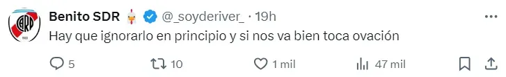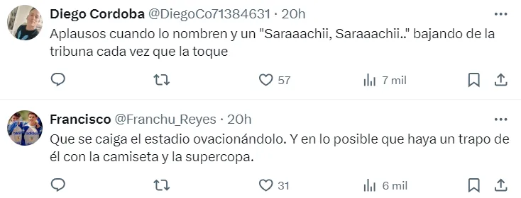 Algunos redoblaron la apuesta y aseguraron que hasta debería haber una ovación irónica. La verdad se sabrá únicamente si al marcador de punta le toca sumar minutos ingresando desde el banco, teniendo en cuenta que será Lautaro Blanco quien jugará desde el inicio.
