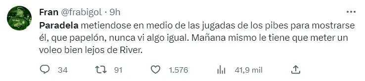 River volvió a completar una buena noche de fútbol, coronada con la victoria y por haber quedado a un paso de quedarse con la Liga Profesional. Sin embargo, entre tantas buenas noticias y puntos altos, también hubo lugar para lo negativo. En las redes no pasó desapercibido.