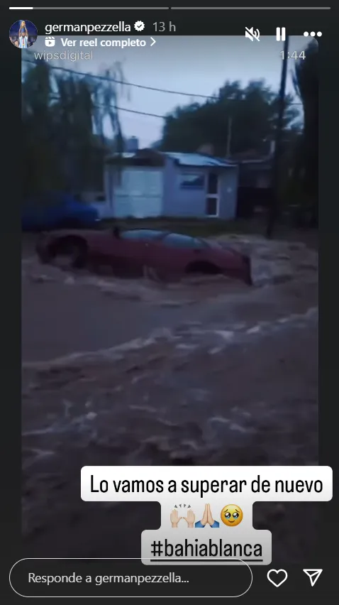 Germán Pezzella nació en Bahía Blanca y allí todavía vive parte de su familia, por lo que esta situación lo atraviesa de manera particular. El Cabezón utilizó su cuenta de Instagram y subió dos historias. En la primera de ellas compartió algunas imágenes impactantes de lo sucedido en Bahía Blanca como autos dados vuelta y ríos de agua transitando las calles y lo hizo con un mensaje esperanzador: “Lo vamos a superar de nuevo”, acompañado del hashtag #BahíaBlanca.