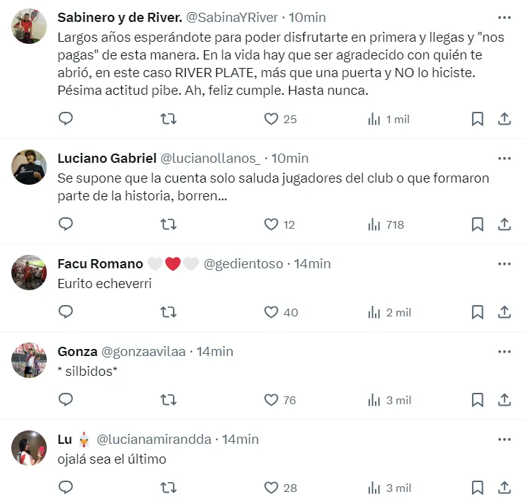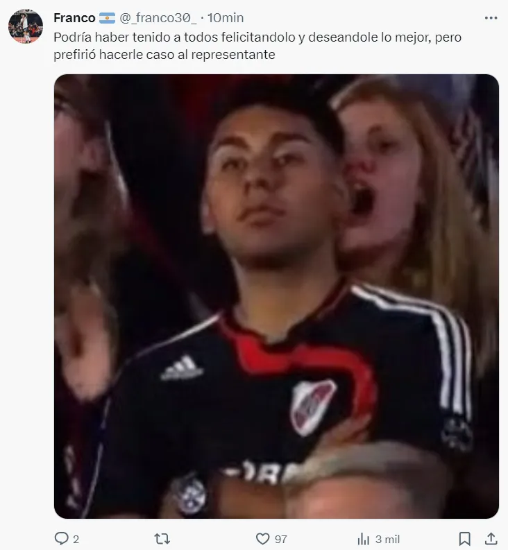 Inmediatamente, los hinchas sintieron una gran decepción y es lógico. Durante años se estuvo viendo como Claudio Echeverri deslumbraba en Inferiores. Recién en 2023 subió a Primera y en sus apariciones tuvo rendimientos muy buenos. Llegó el momento del Mundial Sub 17 y ahí fue la gran figura de la Selección Argentina.
