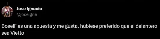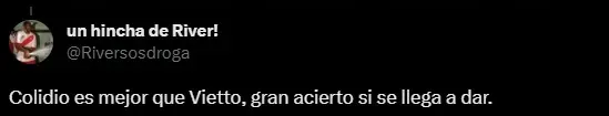 Entre los que están muy de acuerdo con la llevada del jugador que convirtió 11 goles en 70 partidos con Tigre y los que prefieren otros nombres, la parcialidad del Millonario está muy dividida al respecto. Mientras tanto, Toluca también esta interesado y hasta habría comenzado a negociar.