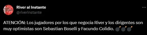 Según informó el usuario River al Instante en Twitter (@Riverinstante), desde la dirigencia del Millonario serían “muy optimistas” con la contratación del jugador de 23 años que se formó en la cantera de Boca. Una información que revolucionó a los hinchas de River.