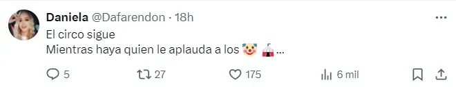 La pareja del Pulpo, con quien comparte un hijo, movió sus redes sociales luego de la acusación del zaguero de Boca. “El circo sigue mientras haya quien le aplauda a los payasos”, soltó la modelo, aunque no aclara si se refiere al cruce de su marido o a otro tema.