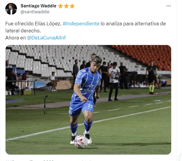 Justamente López, podría abandonar a la institución en los próximos días, ya que acorde a lo que informa el medio De La Cuna Al Infierno, fue ofrecido por su representante a Independiente, y desde el Rojo lo analizan como una alternativa a Mauricio Isla, flamante refuerzo.