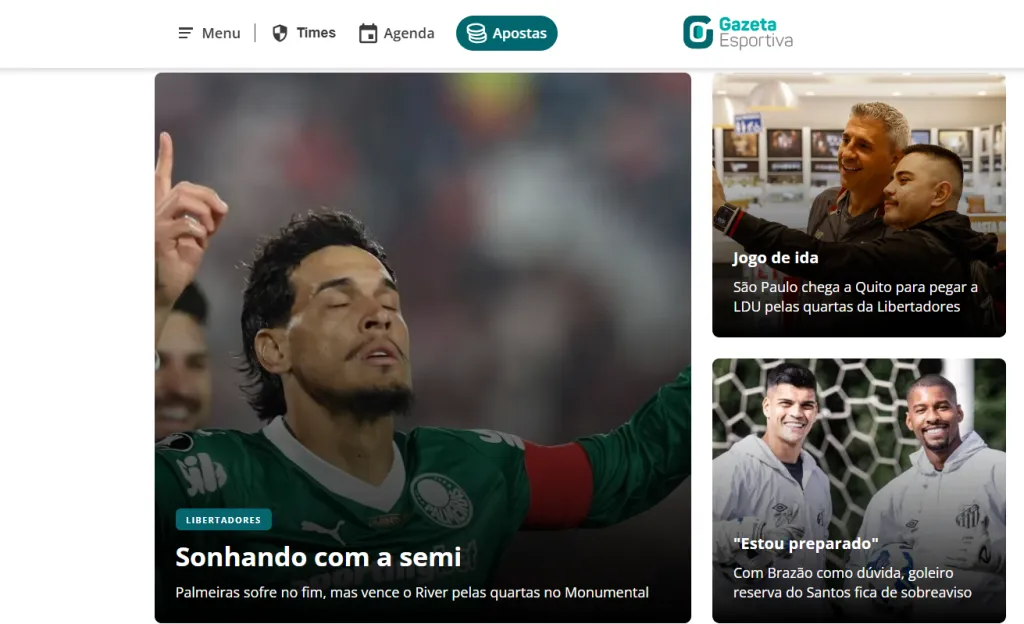 Así lo exhiben los medios de comunicación del país vecino. Por ejemplo, Gazeta Esportiva, que directamente apunta que el Palmeiras ”sueña con la Semi”, con una imagen de Gustavo Gómez, autor del primer gol del Verdao este miércoles en Núñez, por la ida de los Cuartos de Final de la Copa Libertadores.