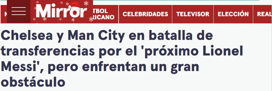 Al respecto, la prensa del Reino Unido reaccionó al nombre del mediocampista riverplatense Claudio Echeverri, el cual suena cada vez más fuerte. De tal modo, que el medio citado anteriormente tituló que el Manchester City y el Chelsea están peleando por quedarse con el ”próximo Lionel Messi”. Ambos estarían dispuestos a ejecutar la cláusula de rescisión de 25 millones de dólares.