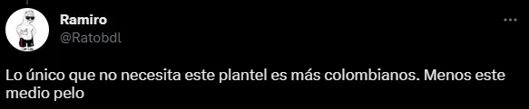 Con comentarios como “lo que River menos necesita son colombianos” o “no traigan al burro este”, los fanáticos del Millonario que comentaron el rumor en redes sociales dejaron muy en claro su postura sobre la posible incorporación.