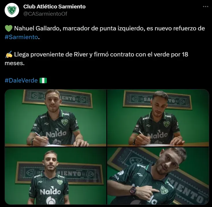 Es que, este martes, Sarmiento de Junín, combinado que milita en la máxima categoría del fútbol argentino, hizo oficial la contratación del futbolista de 25 años de edad, que ya firmó un contrato por 18 años de duración con la entidad Verde.