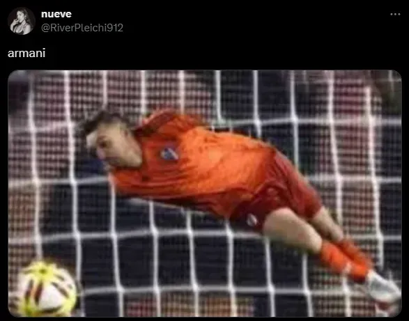 A raíz de esta equivocación, las redes sociales aprovecharon la ocasión para burlarse de Armani. X (Twitter) se llenó de comentarios contra el guardameta, pero también de imágenes y videos con comparaciones o hipérboles burlescas. A continuación, los mejores memes contra el arquero de River.
