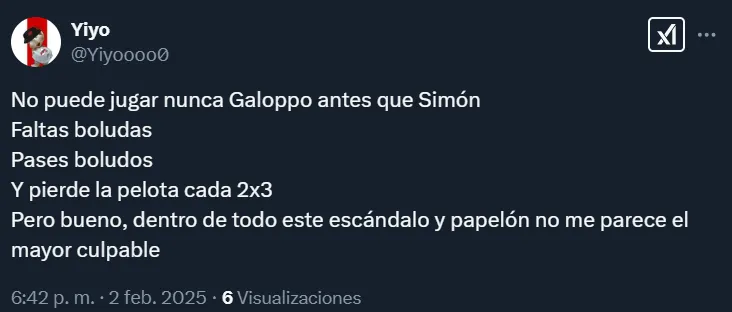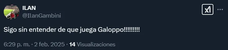 Hablamos de Giuliano Galoppo, jugador que había expuesto algunas notas interesantes en los cotejos anteriores pero que, este domingo, en la cancha de San Lorenzo, no estuvo a la altura de las circunstancias. Por ello, los hinchas lo hicieron tendencia.