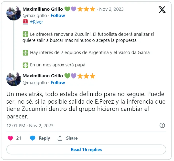 Micho quiere contar con Zucu para el 2024 y es por eso que el club le ofrecerá la renovación en los próximos días. Quedará en manos del jugador, que viene sumando poquísimos minutos luego de haberse recuperado de una rotura de ligamento cruzado anterior de la rodilla izquierda.